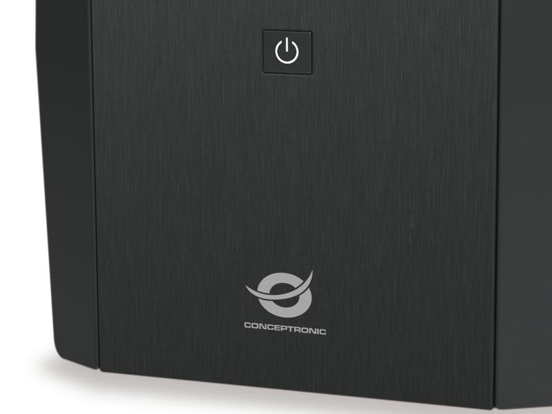 Conceptronic ZEUS04EM. UPS-topologi: Linjeinteraktiv, Uteffekt kapacitet (VA): 2,2 kVA, Uteffekt: 1320 W. AC försäljningsställen: IEC Jumpers, Typ F, Antal uttag AC: 5 AC-utgångar. Batterispänning: 24 V, Batteriladdningstid (90%): 8 h. Formfaktor: Kompakt, Produktens färg: Svart, Kylning typ: Aktiv. Bredd: 148 mm, Djup: 298 mm, Höjd: 178 mm