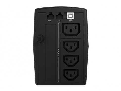| UPS-topologi | Linjeinteraktiv | | Uteffekt kapacitet (VA) | 0,65 kVA | | Uteffekt | 360 W | | Inmatning spänning (min) | 220 V | | Inmatning spänning (max) | 240 V | | Utgång, driftspänning (min) | 220 V | | Utgång, driftspänning (max) | 240 V | | Automatisk spänningsreglering (AVR) | Ja | | Effekt skyddsfunktioner | Överbelastning | | Hörbart larm | Ja | | Hörbara alarmlägen | Larm när batteriet är på, Fel, Larm vid låg batterinivå, Överbelastningslarm | | Automatisk omstart | Ja | | Ursprungsland | Kina | Anslutningar |