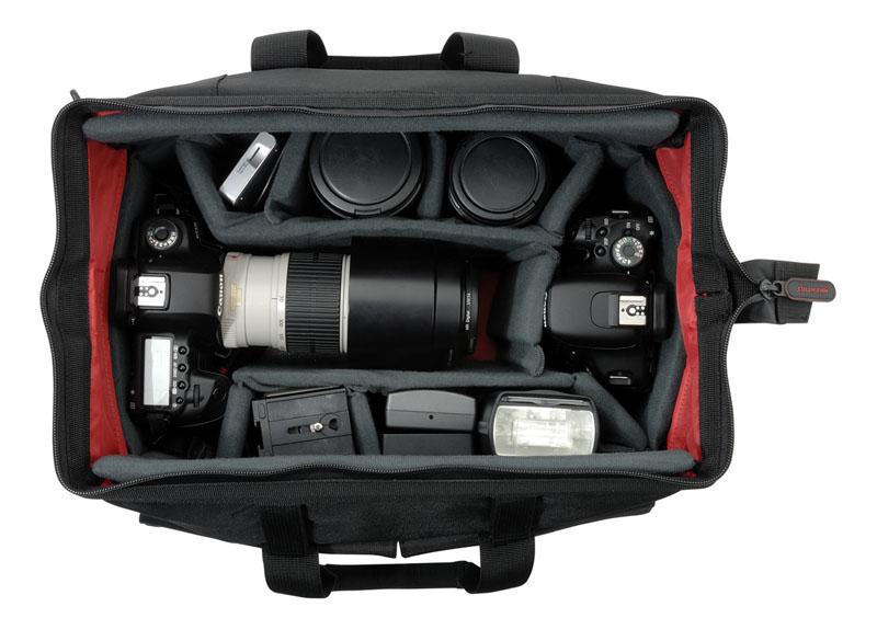 The bag is very padded on the inside with numerous compartments which provide safe areas for all pieces of equipment.