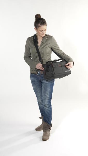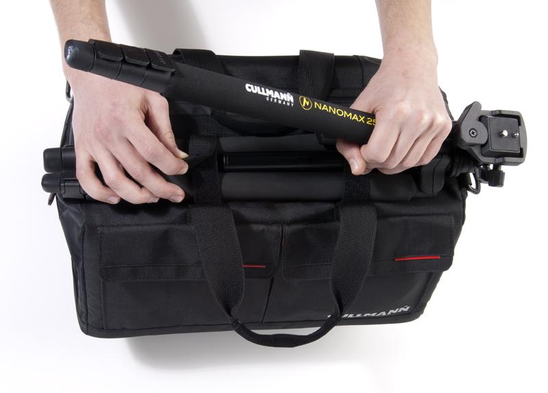 All zips are concealed and waterproof. A tripod is secured in place with the stable fastening loops. The robust strap on the bag makes it suitable for transportation on a trolley. There are also large area resting feet on the bottom of the bag.
