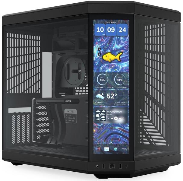 - At a resolution of 1100 x 3840 (4K) and refresh rate of 60Hz, this capacitive touchscreen delivers an insanely crisp and buttery smooth visual experience alongside 10-point multi-touch capability which unlocks a magnitude of possibilities with extensive screen customization powered by HYTE Nexus software. All in a single package integrated into the case chassis structure, pioneering meaningful digital interaction with the best display ever in a case.