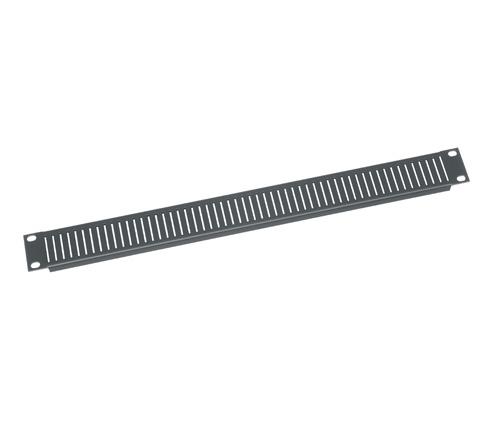 Vent Panel, 1 RU, Steel EVT1 Economical steel flanged panel, 17% open area, flat black powder coat Features: EVT Series vent panels provide an economical solution with a vertical slotted design. • Sturdy steel construction • Flanged Panel • 17% open area • Flat black powder coat Economical vented panel with a vertical punched pattern Flanged steel construction Black powder coat finish Specifications: General Info Finish: Black Powder Coat Assembly/Installation Information Mounting Points: 2 Listing Agencies/Third Party Certifications RoHS: Yes Greenguard: Yes Dimensions Panel Width: 19 Depth (US): 0.51 Height (US): 1.75 Width (US): 19 Rack Units: 1 Technical Information Material: Steel