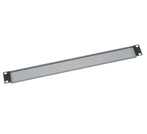 Vent Panel, 1 RU, Perforated, 64% Open Area VT1 Perforated steel flanged panel, 64% open area, flat black powder coat Features: VT Series open perforated panels provide the highest open area of all our vent panels to allow superior ventilation. • Sturdy steel construction • Flanged Panel • 64% open area • Flat black powder coat Vented panel with 64% open area Flanged steel construction Black powder coat finish Specifications: General Info Finish: Black Powder Coat Assembly/Installation Information Mounting Points: 2 Listing Agencies/Third Party Certifications RoHS: Yes Greenguard: Yes Dimensions Panel Width: 19 Depth (US): 0.51 Height (US): 1.75 Width (US): 19 Rack Units: 1 Technical Information Material: Steel