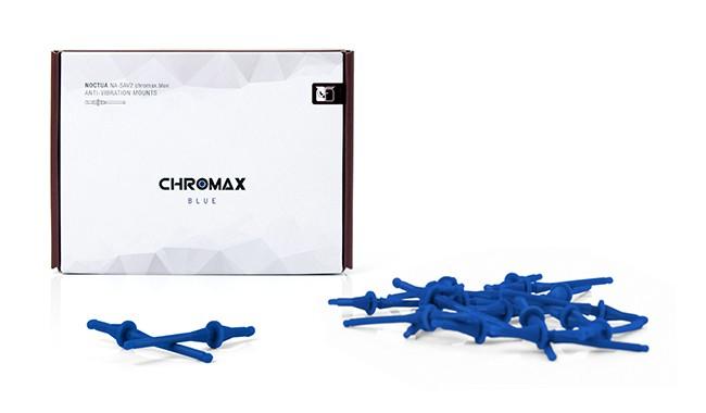 The NA-SAV2 chromax.blue is a fan accessory set consisting of 20 blue NA-AV2 anti-vibration mounts for up to 5 fans. Replacing standard fan screws, the NA-AV2 mounts enable the convenient, quick and vibration-free installation of fans in standard mounting holes for case fans. At the same time, the chromax.blue edition allows the addition of subtle blue accents to Noctua’s redux and industrialPPC fans in order to colour-coordinate them with individual build themes.
