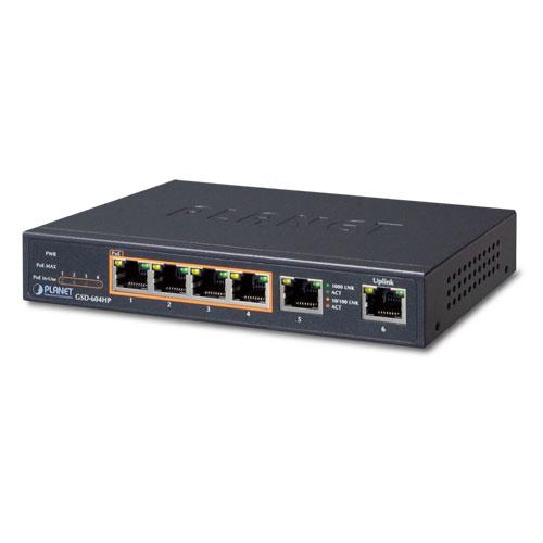 Environment-friendly, Fanless Design for Silent Operation The GSD-604HP comes with a desktop-sized, compact metal housing, making the placement of the unit convenient. It features a ventilated construction in which a cooling fan is not necessary, thereby making its operation noiseless. Moreover, the GSD-604HP is able to operate reliably and stably in any environment without affecting its performance. The deployment of PoE PDs with constant power feeding can be easily and quickly done.