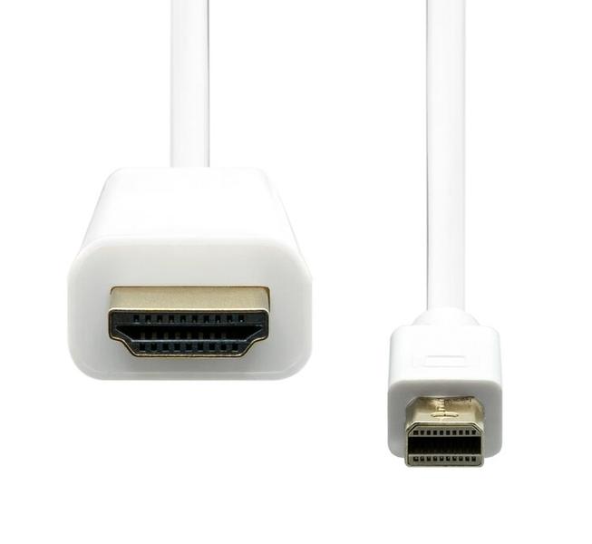 | Kabellängd | 5 m | | Anslutning 1 | Mini DisplayPort | | Anslutning 2 | HDMI | | Typ, kontakt 1 | Hankoppling | | Typ, kontakt 2 | Hankoppling | | Anslutning 1, formfaktor | Rak | | Anslutning 2, formfaktor | Rak | | Plätering på anslutningskontakter | Guld | | HDCP | Ja | | HDCP-version | 2.2 | | DisplayPort Content Protection (DPCP) | Ja | | HDR-stöd | Nej | | Maximal upplösning | 3840 x 2160 pixlar | | Grafikupplösningar som stöds | 3840 x 2160, 1920 x 1080 (HD 1080), 1280 x 720 (HD 720) | | Videolägen som stöds | 720p, 1080i, 1080p, 3840p | | Dataöverföringshastighet | 10,2 Gbit/s | | Max uppdateringsfrekvens | 30 hz | | Kabel material | Koppar | | Antal avskärmande skikt | 3 | | Produktens färg | Vit | | Jacka material | Polyvinylklorid (PVC) | | AWG kabelstorlek | 30 | | Plug & Play-kompatibel | Ja | | Ursprungsland | Kina | | Låsande kontakter | Nej | Miljökrav |