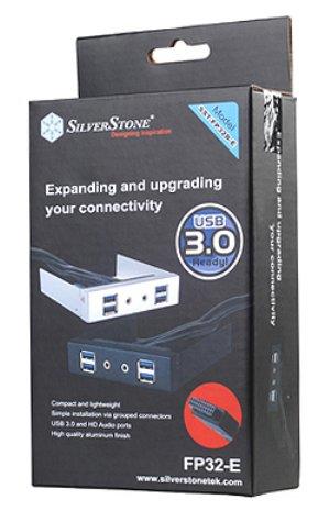 FP32-E The FP32-E is a convenient I/O ports kit for the new generation of computers. At an easy to integrate size of a 3.5” drive bay, it is available in either silver or black aluminum finish. By providing connections for four USB 3.0 ports and High Definition Audio (HD Audio) ports, the FP32-E is an excellent add-on or upgrade for any aluminum case. Compact and lightweight Simple installation via grouped connectors Four USB 3.0 and HD Audio ports High quality aluminum finish