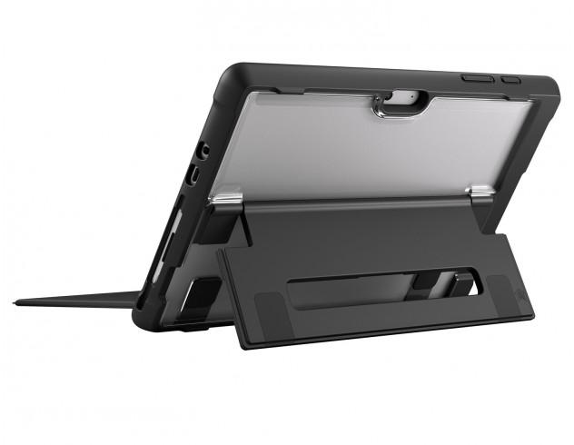 The Dux is a sleek and rugged case designed to complement the Type Cover and Surface Pen while protecting your Microsoft Surface Go. Our unique, transparent back panel allows the pristine beauty of your device to shine through, and works great for asset tagging at schools or businesses. Slim and lightweight, yet super protective, the Dux has been tested to meet or exceed U.S. Department of Defense 810G drop tests standards.