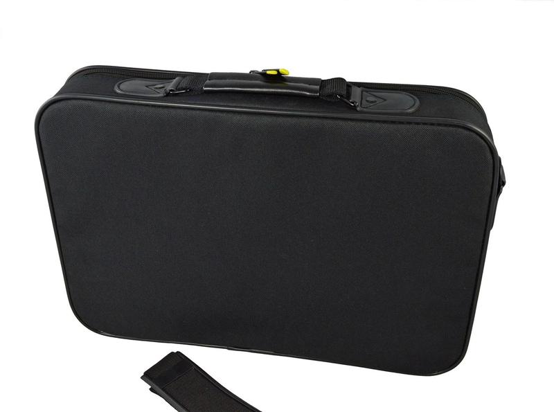 | Ytfärg | Monokromatiskt | | Maximal skärmstorlek | 39,6 cm (15.6") | | Ärendetyp | Portfölj | | Material | Skum, Polyester | | Linjär densitet (titer) | 600 D | | Produktens huvudfärg | Svart | | Brand kompatibilitet | Varje varumärke | | Integrerade fack | Ja | | Antal fack | 1 | | Fickor | Tillbehörsficka, Dokumentficka | | Främre sidoficka | Ja | | Utvändiga fickor | Framficka | | Antal främre sidofickor | 1 | | Bärhandtag | Ja | | Axelrem | Ja | | Löstagbar axelrem | Ja | | Skyddsfunktioner | Stötsäker, Slagtålig, Stötsäker | | Förslutningstyp | Dragkedja | | Ursprungsland | Kina | | Antal | 1 | Vikt & dimension |