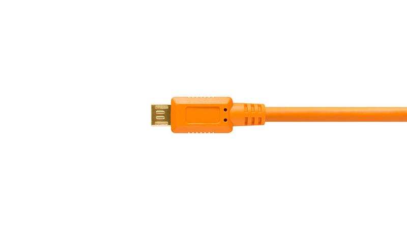The TetherPro cable connects to a camera using a Micro-B 5-Pin port. This cable is designed and manufactured to the highest USB specifications ensuring delivery of excellent performance in speed and reliability.