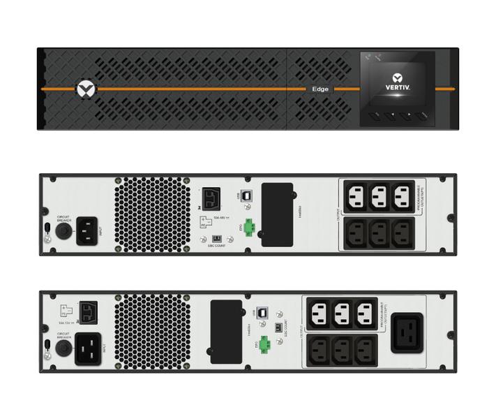 Vertiv Liebert EDGE-3000IRT2UXL. UPS-topologi: Linjeinteraktiv, Uteffekt kapacitet (VA): 3 kVA, Uteffekt: 2700 W. AC försäljningsställen: C13 coupler, C19 coupler, Antal uttag AC: 7 AC-utgångar. Formfaktor: Rack / Torn, Produktens färg: Svart, Rackkapacitet: 2U. Bredd: 438 mm, Djup: 630 mm, Höjd: 88 mm